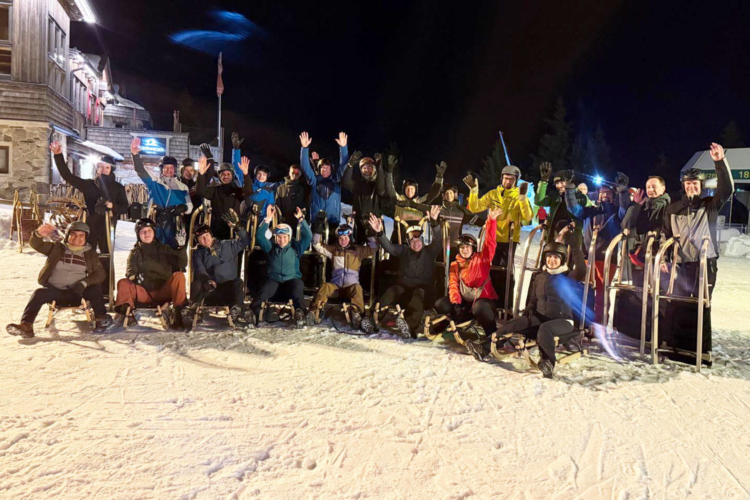 Gestärkt vom gemeinsamen Abendessen ging es danach auf die Hochwurzen: 7 Kilometer Rodelstrecke warteten auf uns – sportlich, anspruchsvoll und definitiv nichts für schwache Nerven. Ein Highlight mit ordentlich Tempo!